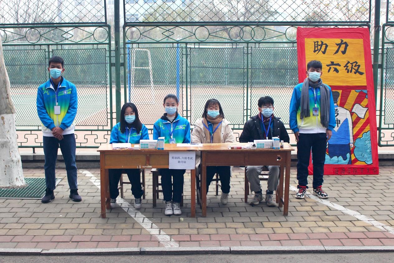 12月12日,雾气蒙蒙、寒流涌动,英语四六级考试如期而至。yl8cc永利官网员工会的成员们早早来到考场外,放置展板、摆放桌椅,口罩、耳机、铅笔、橡皮……一件件崭新的考试用品正等待着需要的人前来领取。工作人员们为考生们提供热情的服务,并为他们送上美好的祝福。