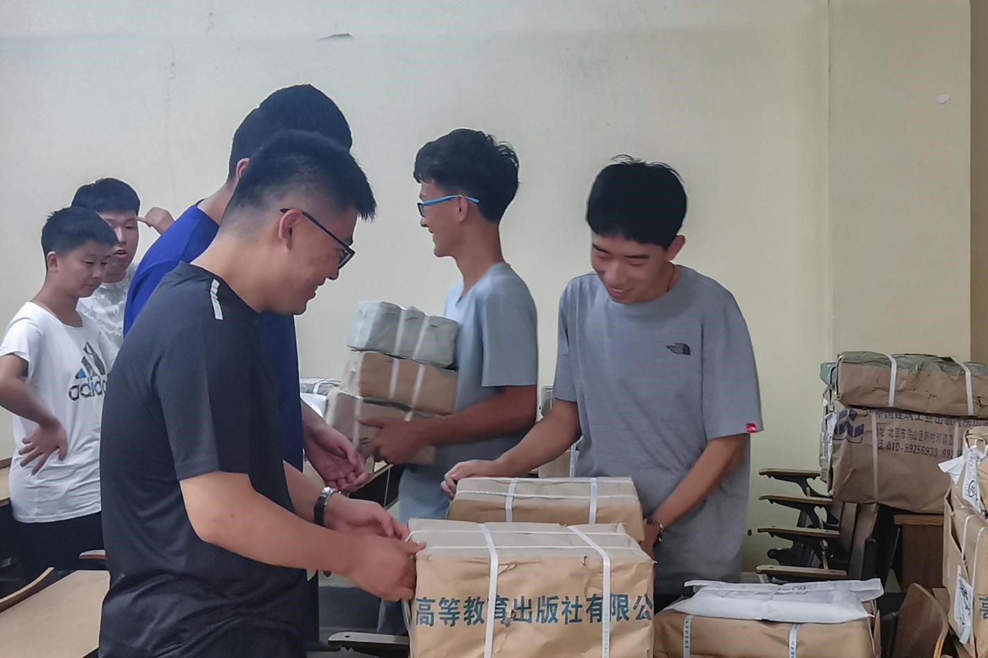 8月28日,yl8cc永利官网教材发放工作在5#103、104有序进行。