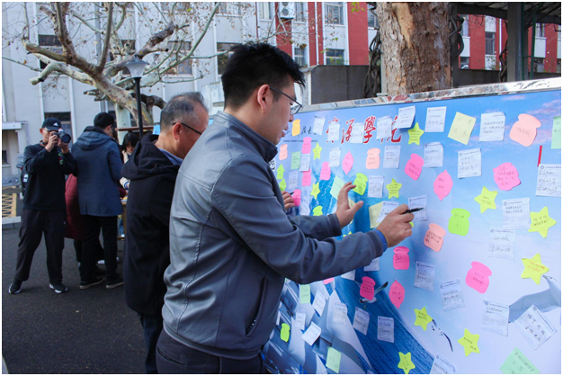 考研学子在“拟上岸榜”中郑重写下姓名与理想院校。考研员工杜文旭表示:一笔落下,是目标,也是激励,相信一战之后,我们必将抵达。(文:臧宇轩 图:杨志浩 张慧臻)