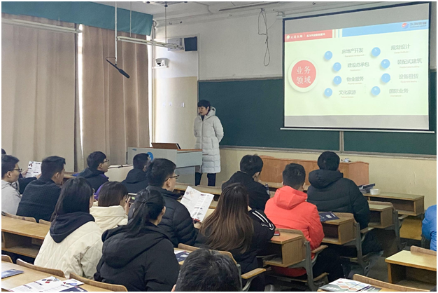 会上,孙莹围绕公司发展愿景、组成架构、专业需求、具体项目等方面进行介绍,并结合幻灯片、视频动画等形式向同学们详细阐述了公司在个人职业发展、工作条件、培养方式、薪金待遇等方面的主要优势。会上,气氛活跃,同学们踊跃提问,孙莹一一耐心解答。