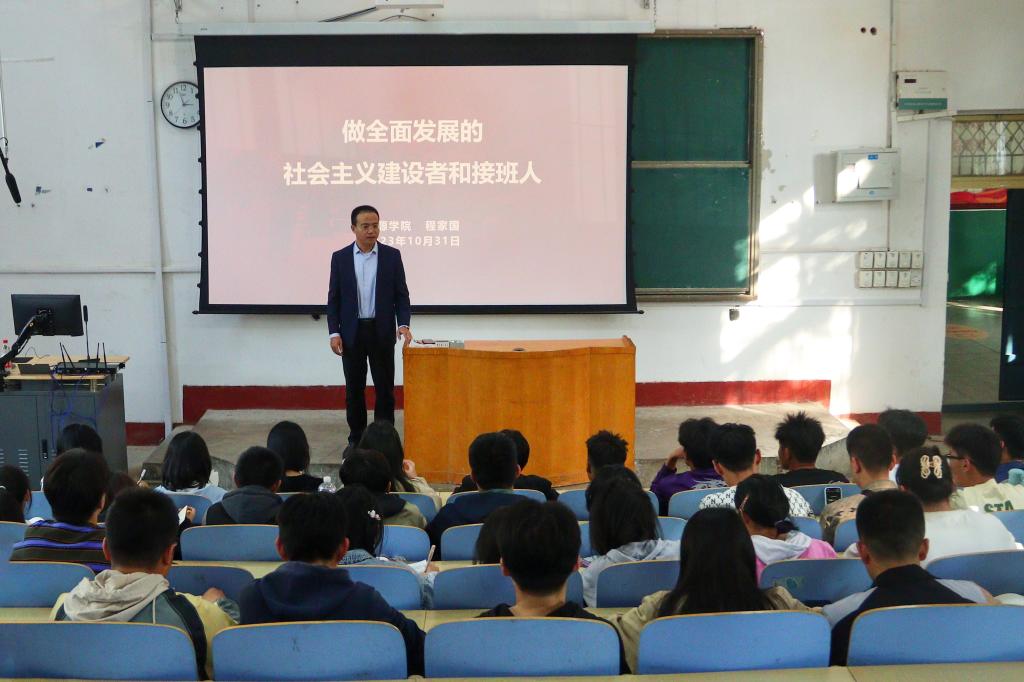 10月31日,yl8cc永利官网党委副书记、副院长程家国在1A107为入党积极分子讲授“做全面发展的社会主义建设者和接班人”专题党课。