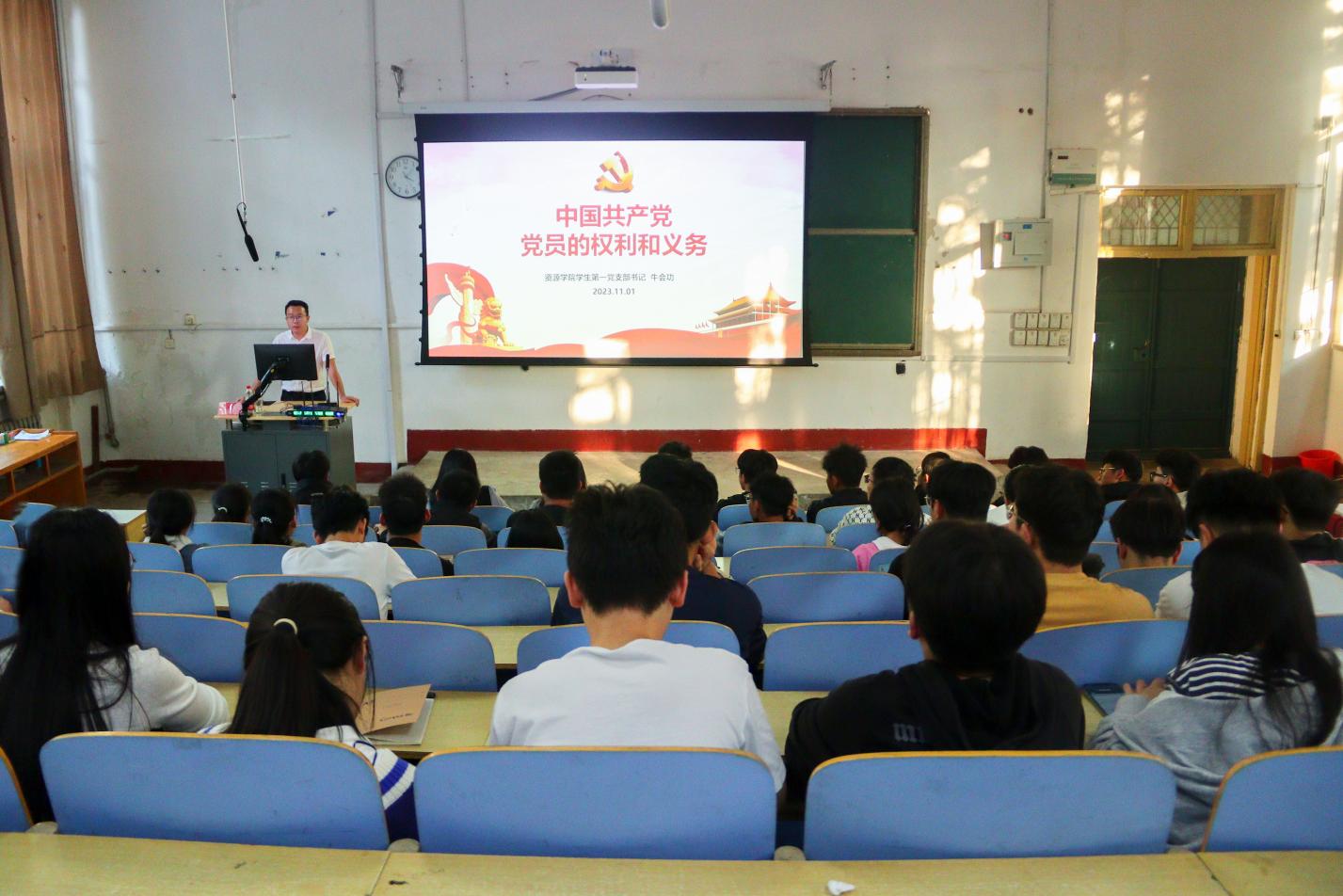 11月1日,yl8cc永利官网员工第一党支部书记、辅导员牛会功在1A107为入党积极分子讲授“中国共产党党员的权利和义务”专题党课。