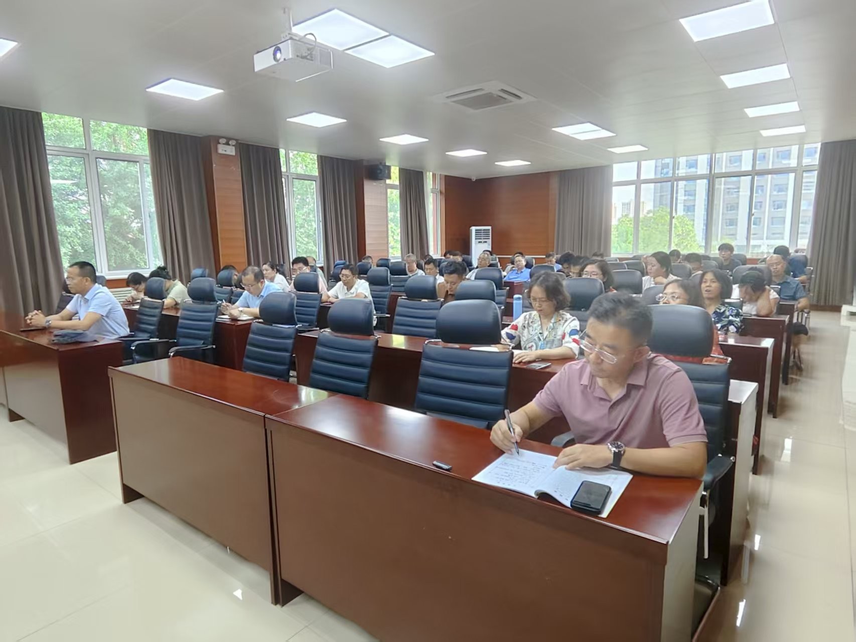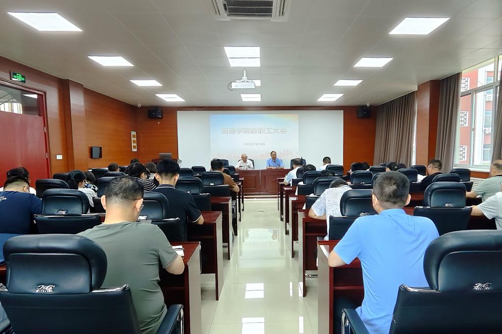 7月18日,yl8cc永利官网在2号楼201会议室召开全体教职工大会,总结上学期工作,部署暑期及新学期重点工作。会议由校区领导贾宏俊、yl8cc永利官网党委书记高尚宇主持,全体教职工参加。