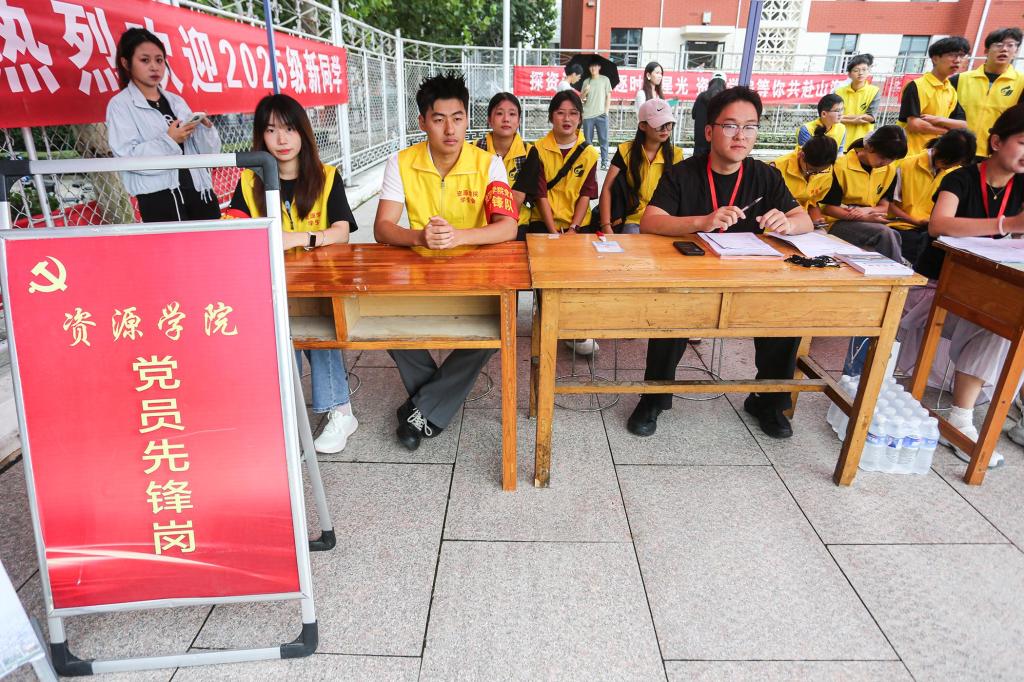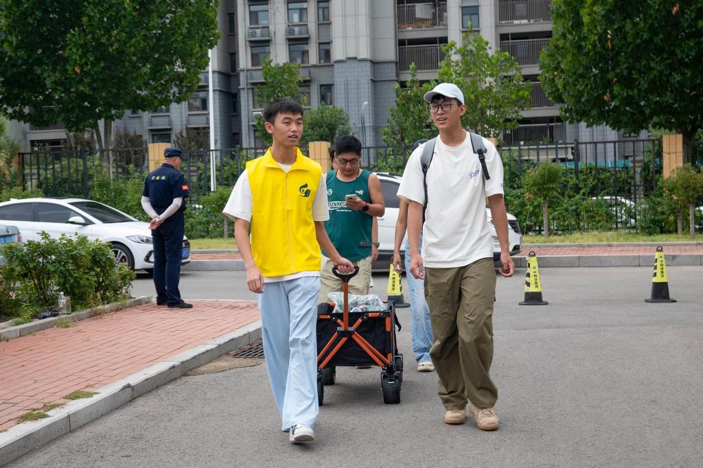 礼堂前、宿舍楼内,100余名志愿者身着亮黄色马甲,忙碌地穿梭在人群之中。他们主动帮助新生搬运行李、指引路线、答疑解惑,用热情与汗水为新生提供暖心服务。