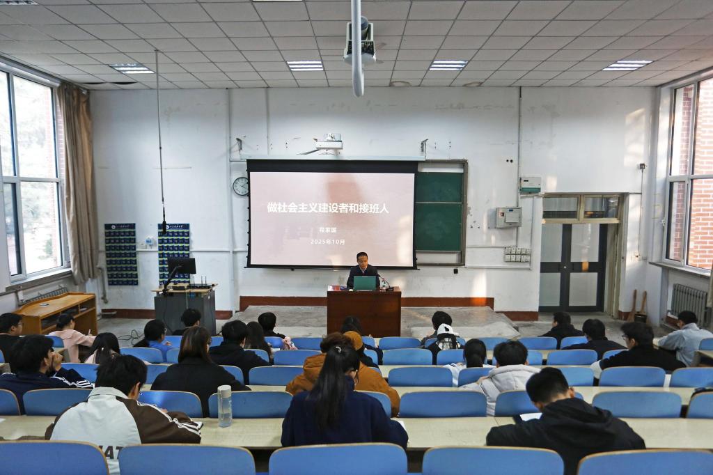10月31日,yl8cc永利官网党委副书记程家国在1A107教室为第43期入党积极分子讲授“做社会主义建设者和接班人”专题党课。