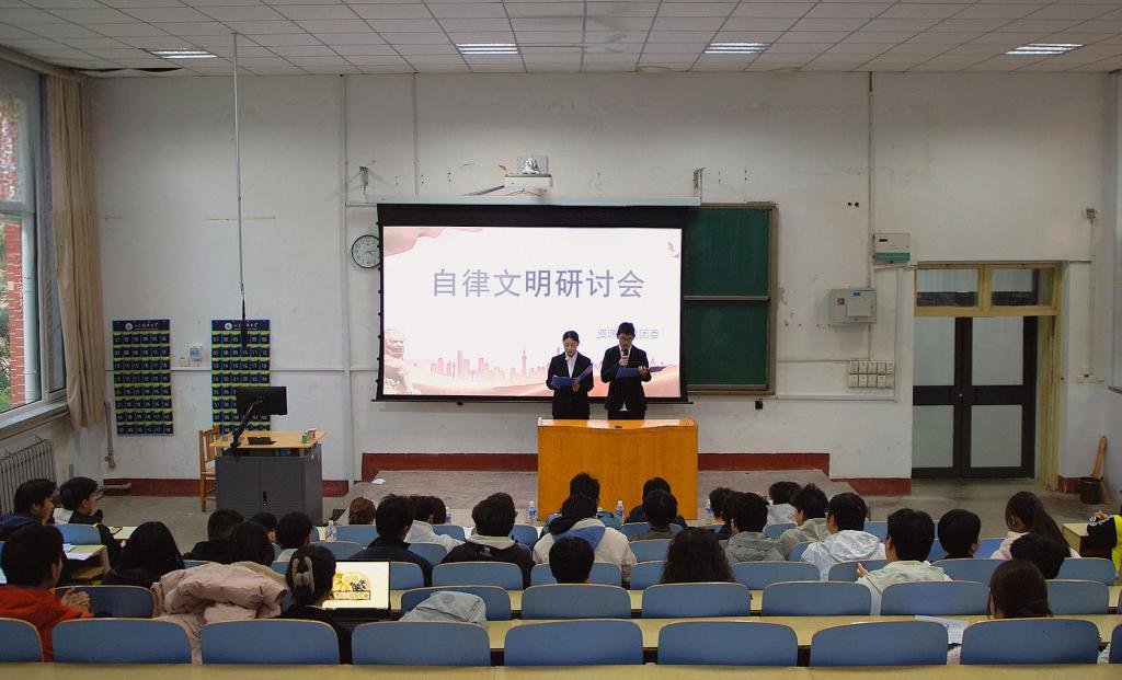 会上,参赛选手围绕自律精神,通过图文并茂的PPT、精心制作的视频以及逻辑清晰的现场阐述,从现实意义与实践方法等多个层面,系统阐释了自律对个人学业进步、品格塑造以及校园文明建设的重要价值,并结合实例分享了践行自律的具体路径。现场气氛活跃,思想交流深入,有效激发了同学们对自律精神的深入思考和实践热情。
