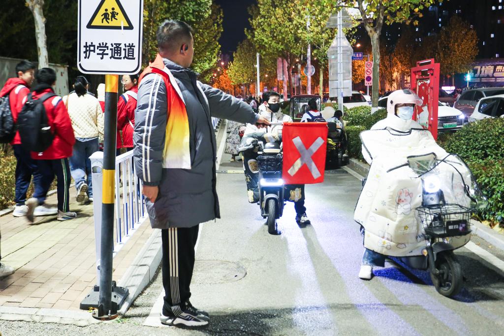 “同学,请走斑马线”“家长您好,电动车请停放在指定区域”……一声声温馨的提示,一次次耐心地引导,志愿者们用微笑和耐心传递着文明交通的理念。傍晚时分,天色渐暗,志愿者们手中的引导旗在路灯映照下格外醒目,他们始终坚持岗位,确保最后一名员工安全离校。