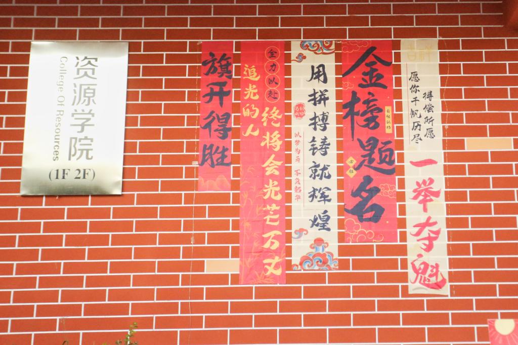 锦鲤载梦行,寓意学子们奋斗之路好运相伴;祥鹤衔云起,象征前程高远、扶摇直上……展板上绘满寓意深远的图样与祝福,寄托着对考研人梦想开花、未来绚烂的美好期盼。“心向星光,笔写山河”“此战必胜,前程似锦”“从容落笔,终成所愿”……同窗纷纷提笔落字,将祝福凝于笔端,让期盼化作星辰,照亮每一个奋笔疾书的晨昏。