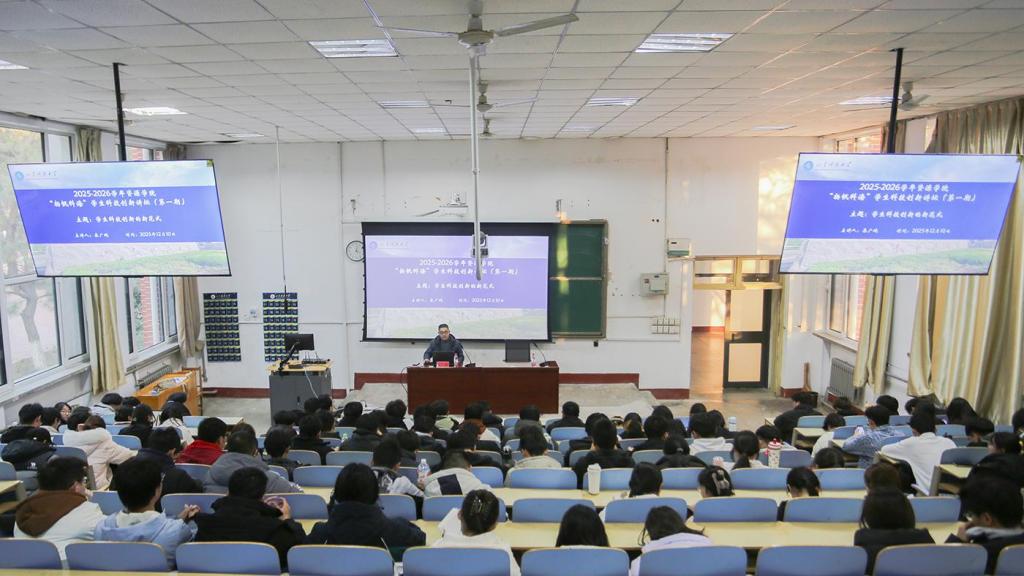 讲坛围绕“科技创新是什么”“为什么参加科技创新”“如何参加科技创新”三大板块系统展开。秦广鹏结合学校科研发展历程和时代背景,系统解读了创新驱动发展战略的演进脉络与新质生产力的核心要义,深刻阐释了科技创新在实现民族复兴伟业中所承载的战略使命与历史责任。他指出,积极参与科技创新活动不仅能深化专业理解、激发探索热情,更能系统提升创新思维能力、问题解决能力与团队协作能力,为个人成长和未来职业发展奠定坚实基础。最后,秦广鹏向同学们提出三点希望:一是主动融入,积极投身学校创新创业平台与各类科技创新竞赛,在实践中锤炼科研能力和创新素养;二是善用资源,主动向yl8cc永利官网优质师资求教,深入其科研方向,在夯实专业根基的同时勇于创新突破;三是紧跟前沿,持续关注学科动态与行业报告,洞察趋势,找准自身研究定位和发展方向。
