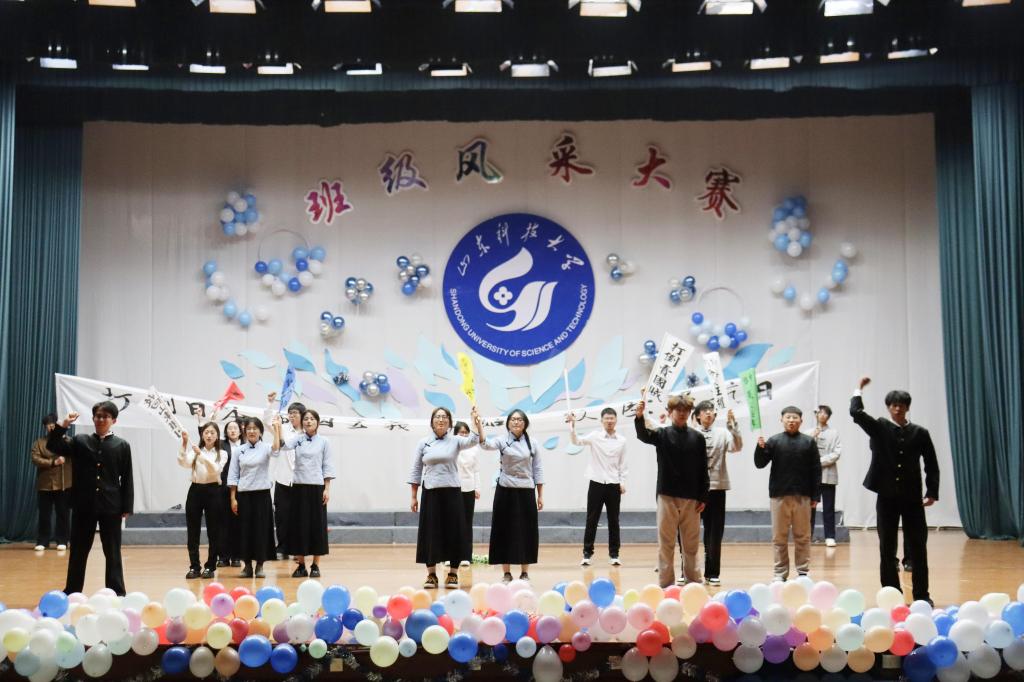 本次大赛分三个阶段进行,前期已完成“班级风采展”及“趣味运动会”两个环节。当日举行的第三阶段以“班级绚丽舞台展”为主题,各班级围绕“抗战胜利与青年担当”进行艺术创作,通过话剧、合唱、舞蹈等多种形式,生动展现红色精神的时代传承,彰显新生班级的凝聚力与创造力。