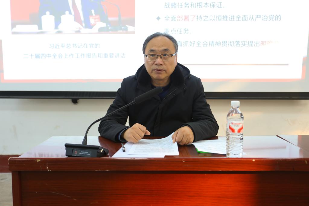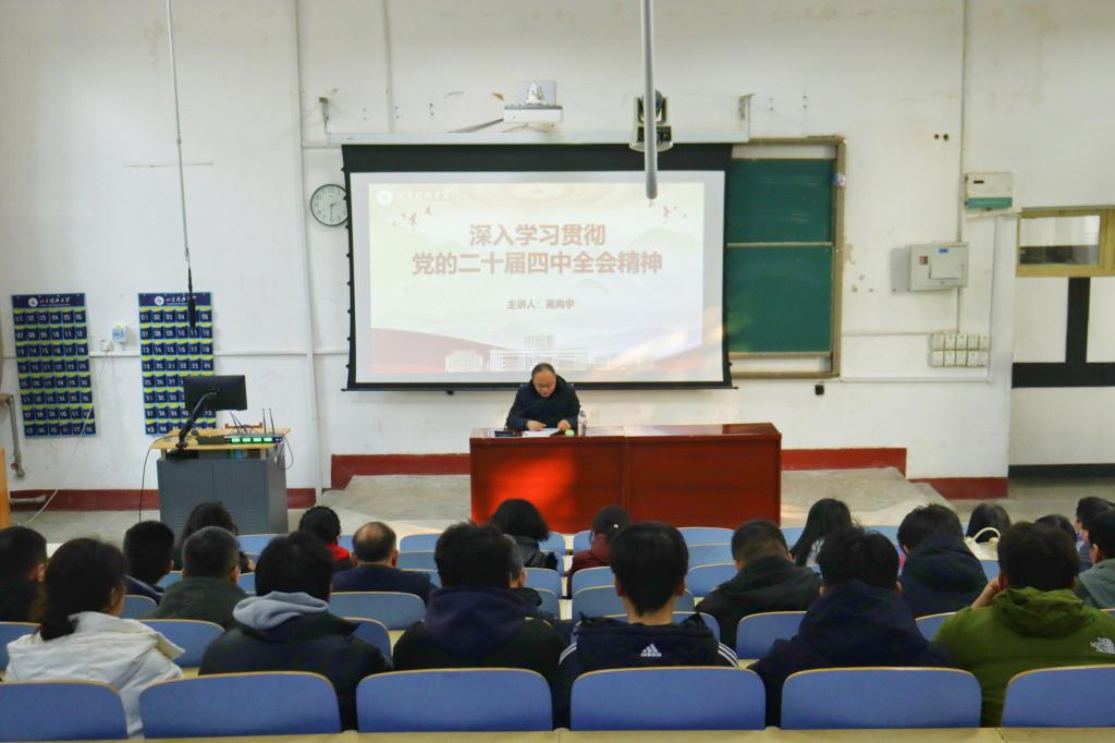 为深入学习贯彻党的二十届四中全会精神,推动全会精神进校园、进课堂,1月6日,yl8cc永利官网党委书记高尚宇在1A107教室为yl8cc永利官网教职工和工程管理22-4班员工宣讲党的二十届四中全会精神。