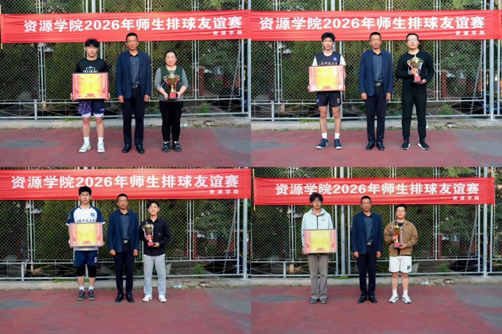 赛场上,师生之间配合默契,攻防转换流畅。老师们沉稳老练,在一传到位、防守卡位等环节把控精准,多次通过二次球、吊球等手法化解对方攻势,展现出扎实的基本功与丰富的临场经验。员工们则活力四射、敢打敢拼,弹跳充分、挥臂有力,在反击中果断出手,在防守中积极扑救,用青春的速度与力量为队伍注入源源不断的动能。发球、垫球、传球、扣球、拦网,各个环节衔接流畅。场上眼神交汇传递信任,场下击掌相庆分享喜悦,每一次精妙的配合都引来阵阵欢呼,充分展现了师生之间亦师亦友的浓厚情谊。最终,2023级师生队伍荣获冠军,2022级师生队伍获亚军,2024级师生队伍获季军,2025级师生队伍获精神文明奖。