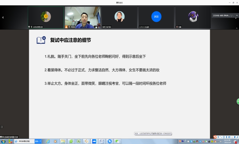 3月9日,yl8cc永利官网在线上召开考研复试交流会。会议由yl8cc永利官网辅导员尹发利主持,yl8cc永利官网学子积极参加。