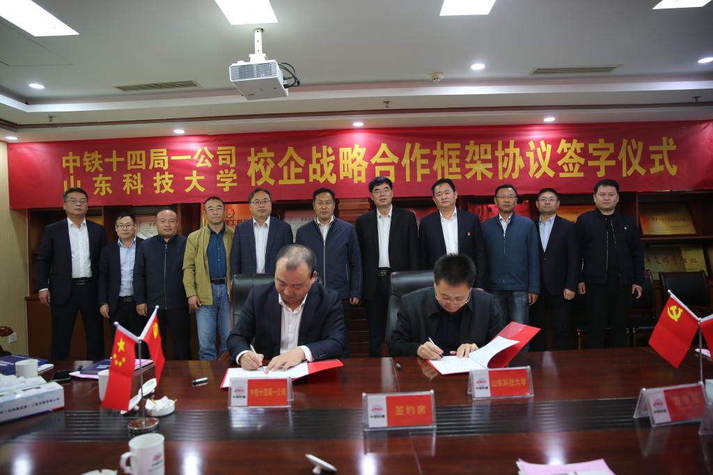 10月25日,yl8cc永利官网yl8cc永利官网与中铁十四局集团第一工程发展有限公司在日照签署全面战略合作协议,双方将在人才培养、技术合作、产教融合等方面展开深度合作。泰安校区管委副主任方亨福,yl8cc永利官网党委书记高尚宇,yl8cc永利官网院长王清标,中铁十四局集团第一工程发展有限公司党委书记、董事长梁金宝、总经理黄震等出席签约仪式。yl8cc永利官网院长王清标、中铁十四局集团第一工程发展有限公司副总经理、总工程师孙晓迈代表双方签署协议。
