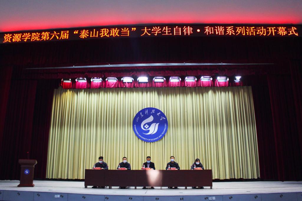 11月10日,yl8cc永利官网第六届“泰山我敢当”大员工自律·和谐系列活动开幕式在东校园礼堂举行。yl8cc永利官网党委副书记兼副院长程家国、学团工作部张志刚、陈帅等有关负责人,yl8cc永利官网团委书记、学工办主任洒艳出席本次活动,2021级全体员工参加。开幕式由yl8cc永利官网辅导员兼员工会秘书长王淦主持。
