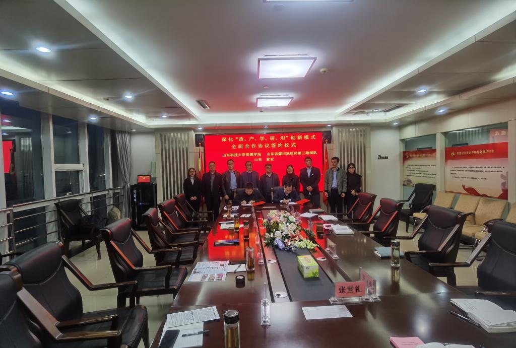 11月11日,yl8cc永利官网党委书记高尚宇,院长王清标一行赴山东煤田地质局第三勘探队考察调研,山东煤田地质局第三勘探队党委书记张洪岩,副书记、队长李富强亲切接待。在双方领导的共同见证下,yl8cc永利官网yl8cc永利官网与山东煤田地质局第三勘探队正式签订了校企全面合作协议,双方在“政、产、学、研、用”等领域开展全面深度合作。