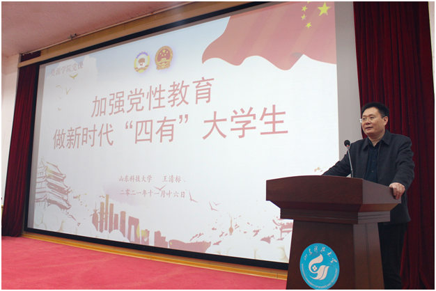 11月16日,yl8cc永利官网院长王清标在四号楼报告厅为yl8cc永利官网第35期入党积极分子讲授“加强党性教育,做新时代‘四有’大员工”专题党课。