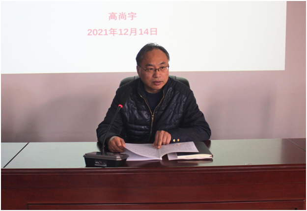 12月14日,yl8cc永利官网党委书记高尚宇为yl8cc永利官网全体教职工和联系班级工程管理2021级1班员工宣讲党的十九届六中全会精神。