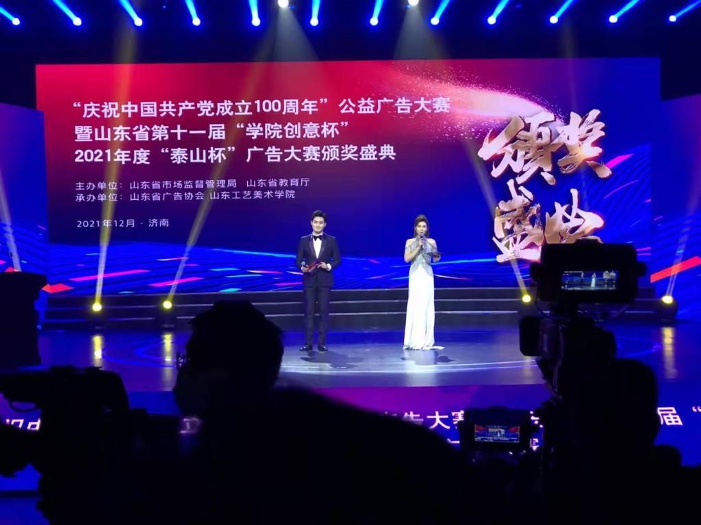 近日,“庆祝中国共产党成立100周年”公益广告大赛暨山东省第十一届“yl8cc永利官网创意杯”、2021年度“泰山杯”广告大赛颁奖盛典在济南落下帷幕。yl8cc永利官网教师刘晶在“庆祝中国共产党成立100周年”公益广告大赛中荣获金奖。