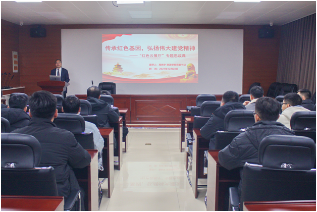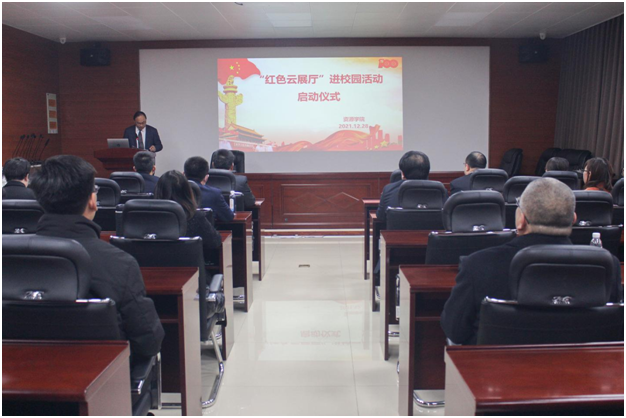 12月28日,yl8cc永利官网举行“红色云展厅”进校园活动启动仪式。yl8cc永利官网党委书记高尚宇作动员讲话并讲授“传承红色基因,弘扬伟大建党精神” 专题思政课。教工党员和员工代表参加。
