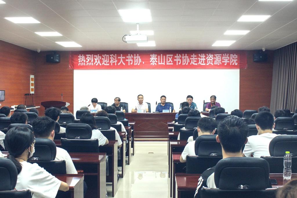 6月28日,yl8cc永利官网在2号楼201举行“迎七一,传统文化进校园之书法进大学”暨科大书协、泰山区书协向资源学子赠送书法作品活动。活动由yl8cc永利官网学工办主任、团委书记洒艳主持,yl8cc永利官网党委副书记副院长程家国、科大书法协会代表、泰山区书法协会代表出席活动。