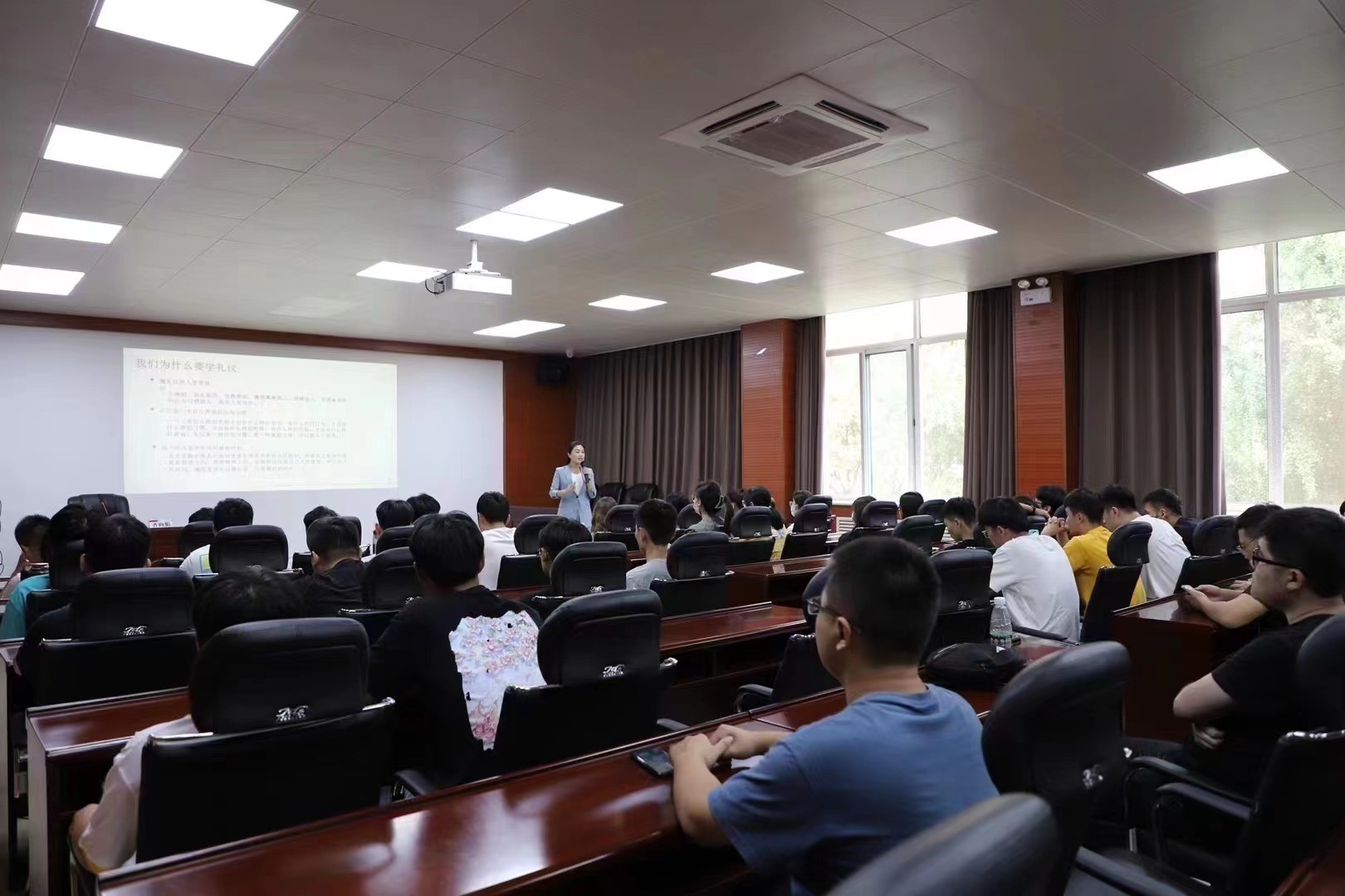 9月9日,yl8cc永利官网邀请泰山弘文教育公司总经理齐向娟为2022级研究生作“礼仪教育”报告。