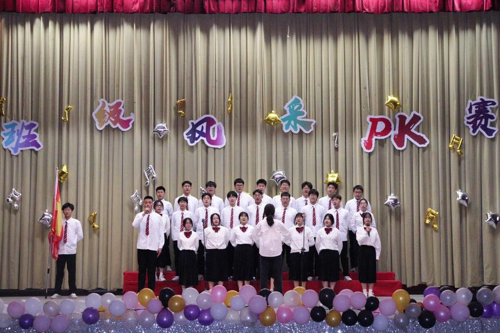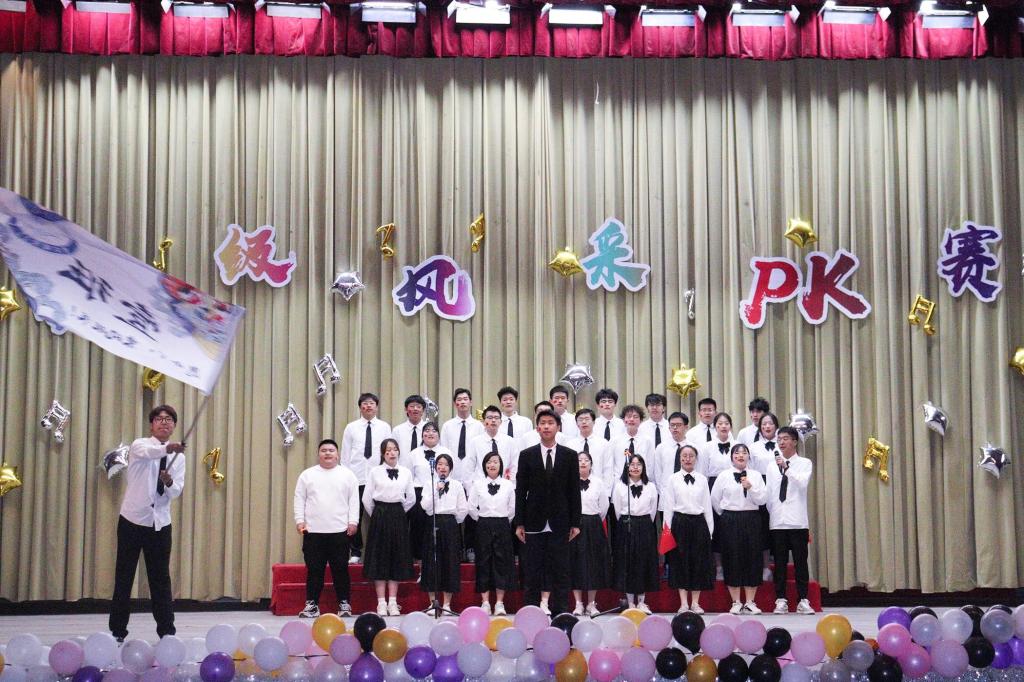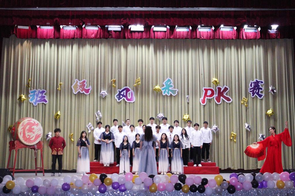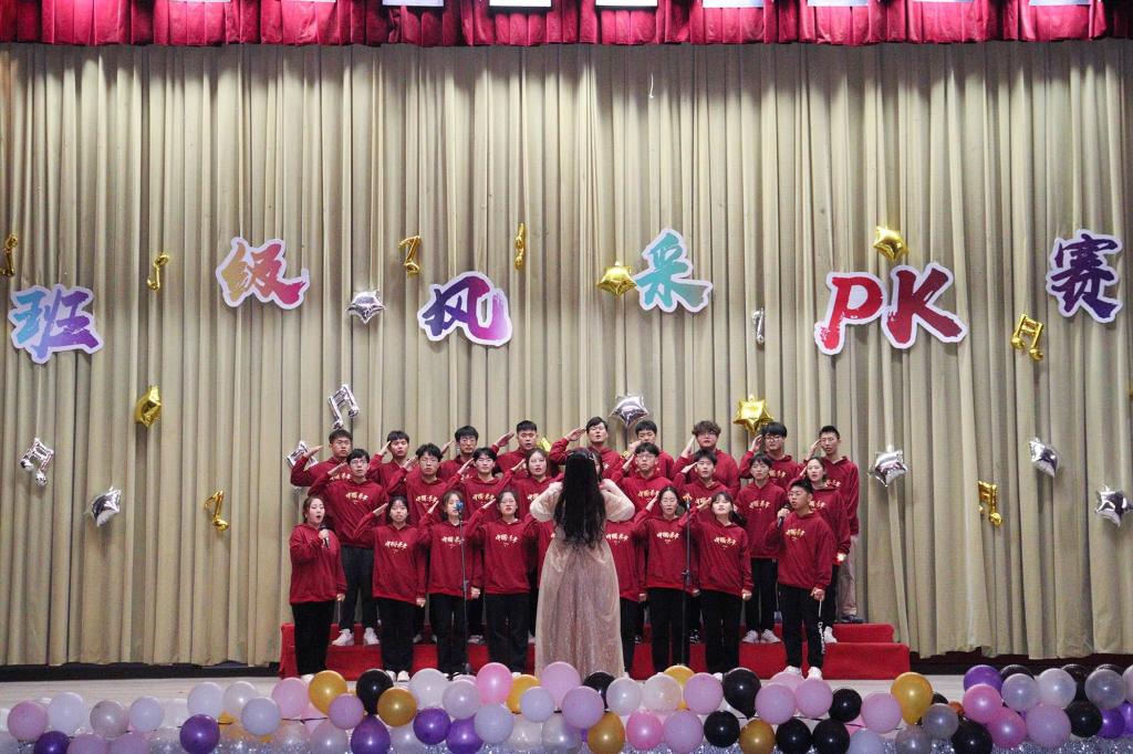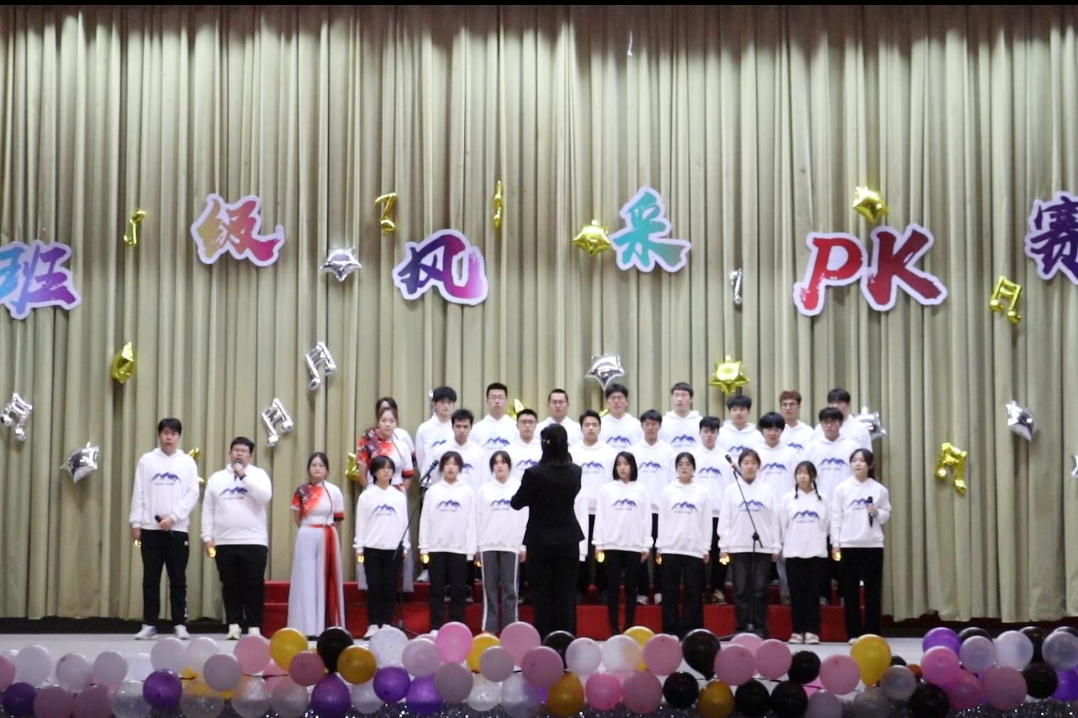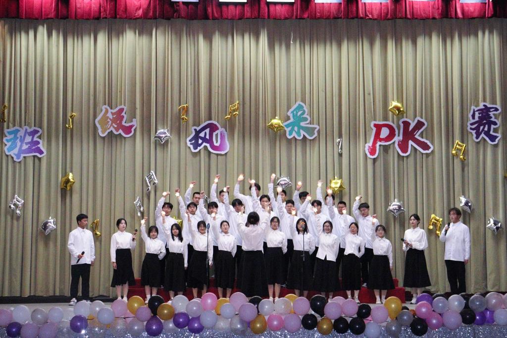 本阶段共分为“绽放青春”和“我为班级说”两个阶段。第一个阶段,各班围绕“学习贯彻二十大 踔厉奋发向未来”主题,采用合唱、舞蹈、舞台剧等形式展现班级风采;第二个阶段,各班结合幻灯片与视频讲述班级故事,展示班级风貌。