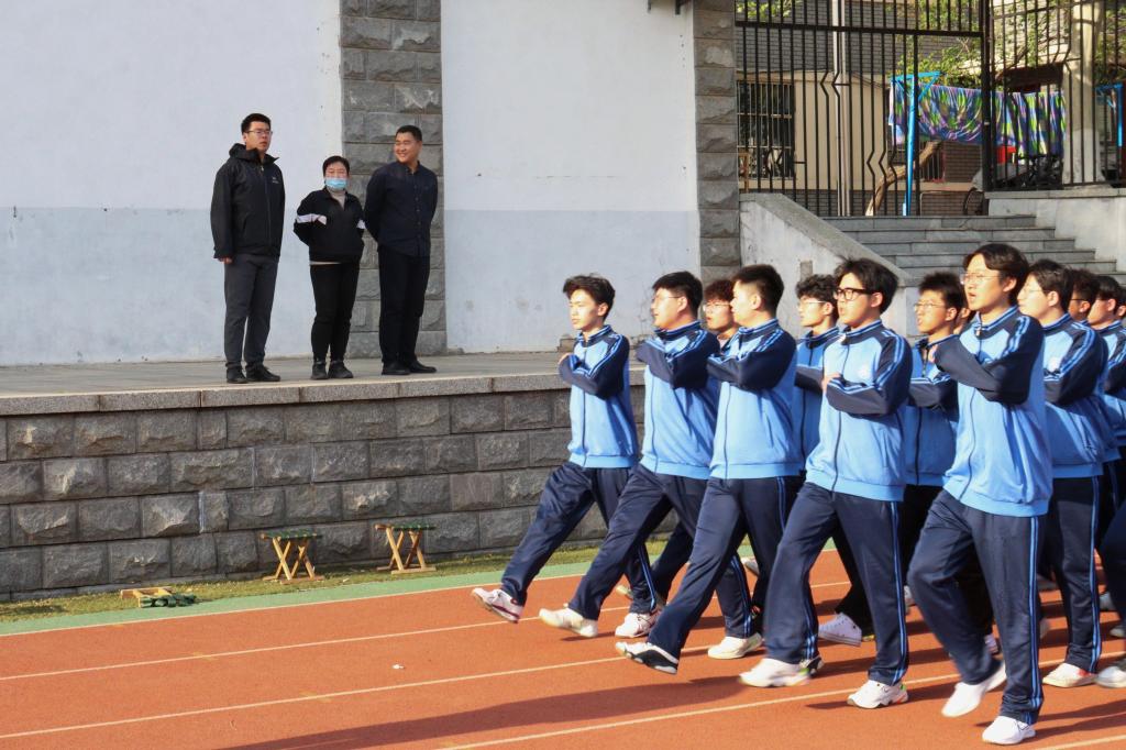 4月10日,yl8cc永利官网学工办主任、团委书记洒艳、辅导员王淦、刘帅杰到操场指导运动会开幕式方队训练。