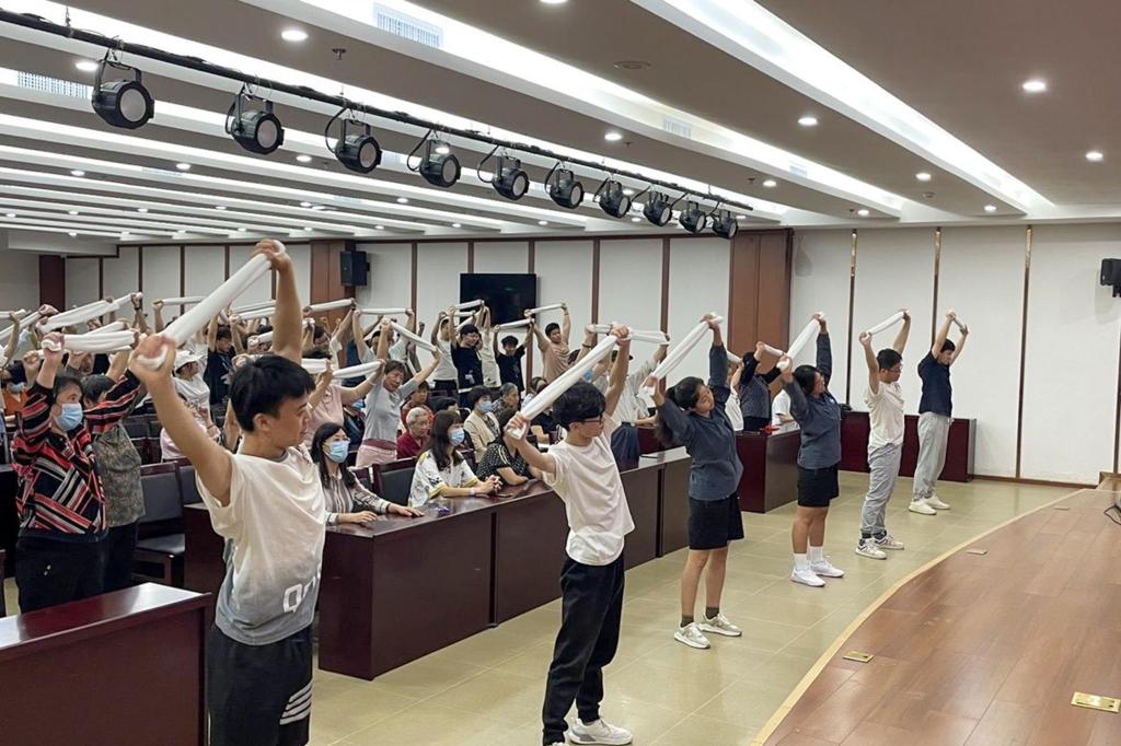 培训会上,工作人员主要从跌倒预防和噎食急救方法两方面为同学们展开介绍。医护工作人员结合实际案例,具体讲解了跌倒的危害、跌倒高危人群以及预防跌倒等相关知识。在噎食急救方面,医护人员现场展示并具体讲解了海姆立克急救法的操作步骤和注意事项。同学们认真倾听医护人员的讲解示范,仔细记录相关要点,并在医护人员的帮助指导下进行操作模拟,初步掌握了应急救护技能。