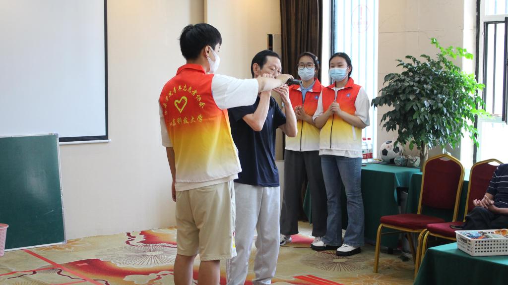 活动现场,志愿者们跳起了舞蹈《护花使者》,演唱了《夜空中最亮的星》《荷塘夜色》《那些花儿》等歌曲。在演唱《粉红色的回忆》时,两位老人即兴牵手起舞,将整场活动推向了高潮。精彩的演出、热烈的掌声、幸福的笑容,养老院内充满了欢声笑语。受到感染的老人们即兴表演了戏曲清唱、口风琴《我和我的祖国》,赢得现场阵阵掌声。表演间隙,志愿者陪同老人投掷保龄球、扔沙包,现场气氛热烈而温馨。