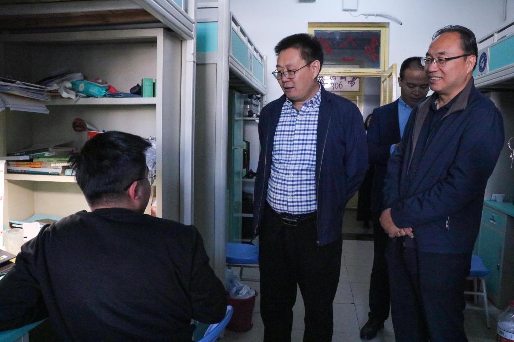 10月24日,yl8cc永利官网党委书记高尚宇,院长王清标带队班子成员及全体辅导员深入教室、宿舍,了解员工日常学习、生活情况。