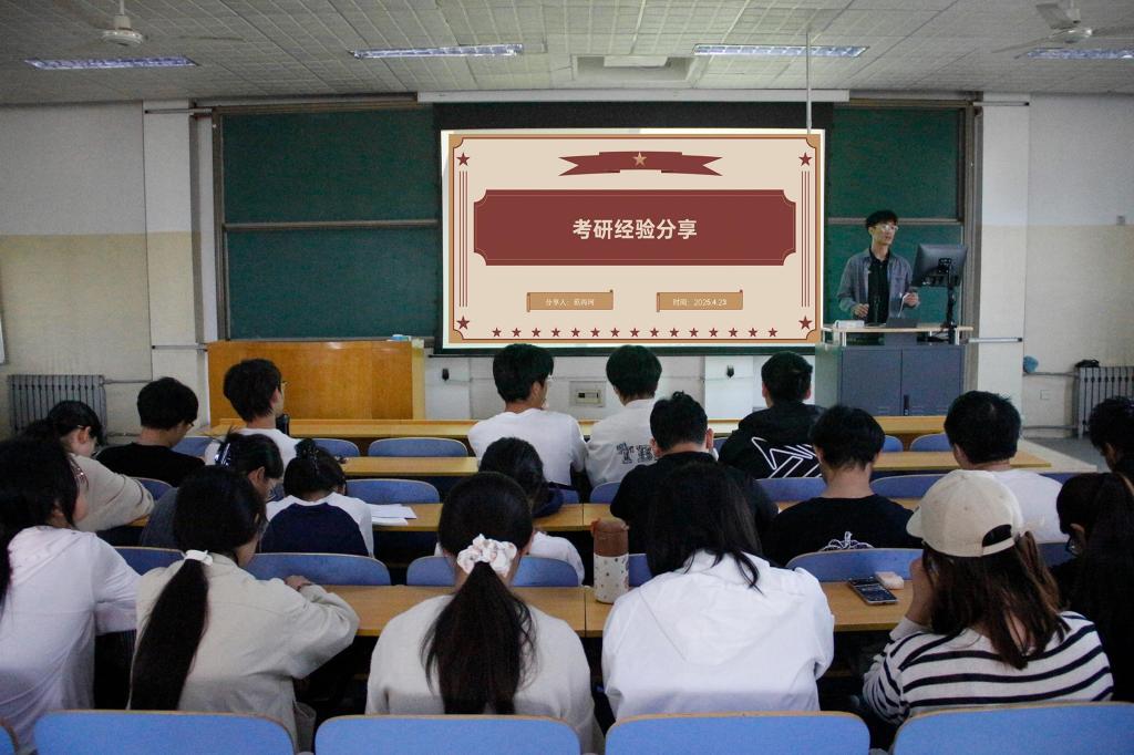 会上,两位主讲人结合自身考研经验,重点围绕院校选择、备考规划等方面进行讲述。在院校选择方面,建议综合评估报考院校专业优势、地理位置、个人规划等因素,理性分析考研形势,做出科学决策。备考策略部分,主讲人从自身备考经历出发,着重强调了备考的时间安排,将复习进程分为知识奠基、强化攻坚和收尾冲刺三个阶段,并分享了各阶段的时间管理技巧。